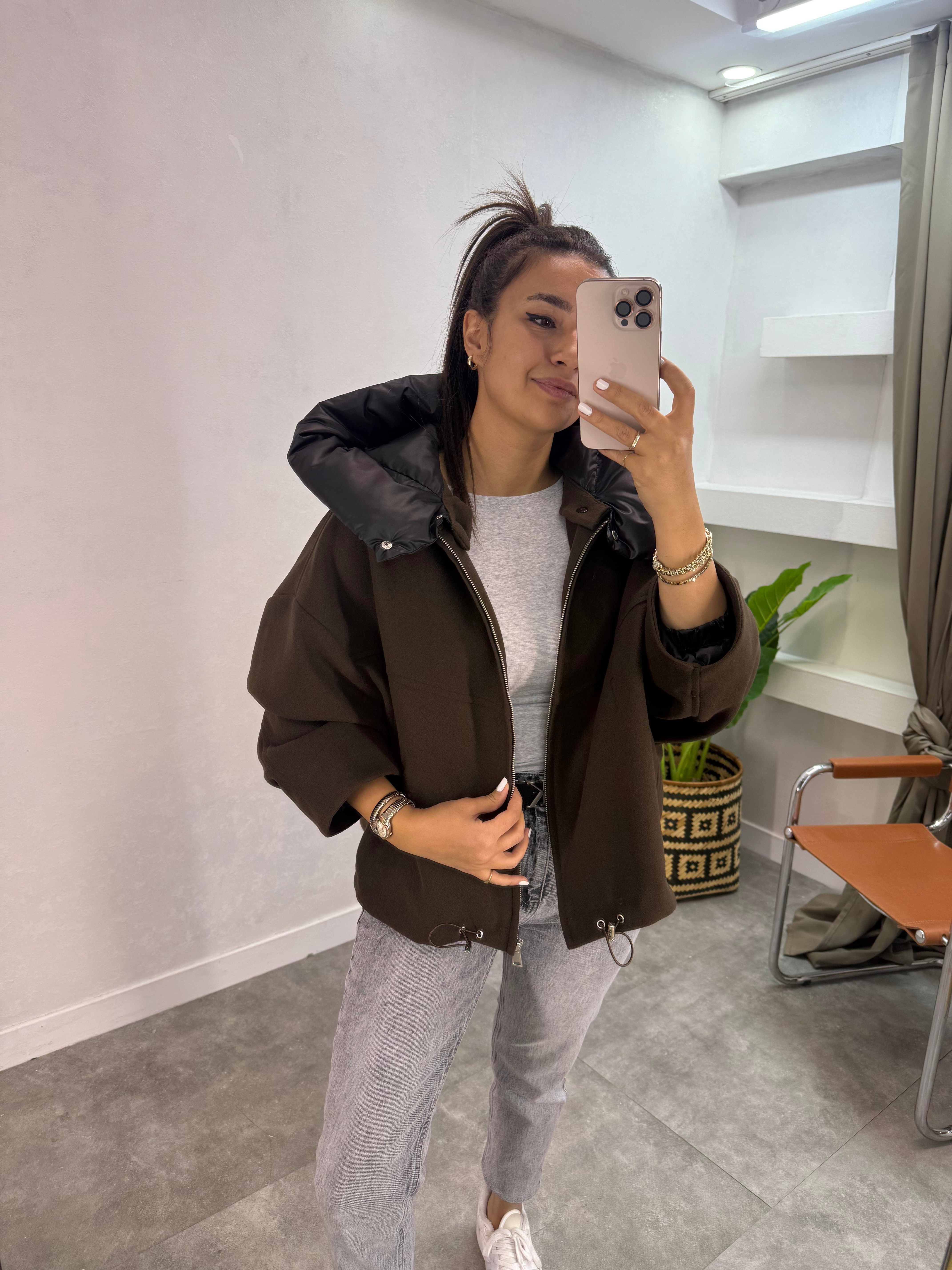 KAPÜŞONLU BOMBER CEKET KAHVE