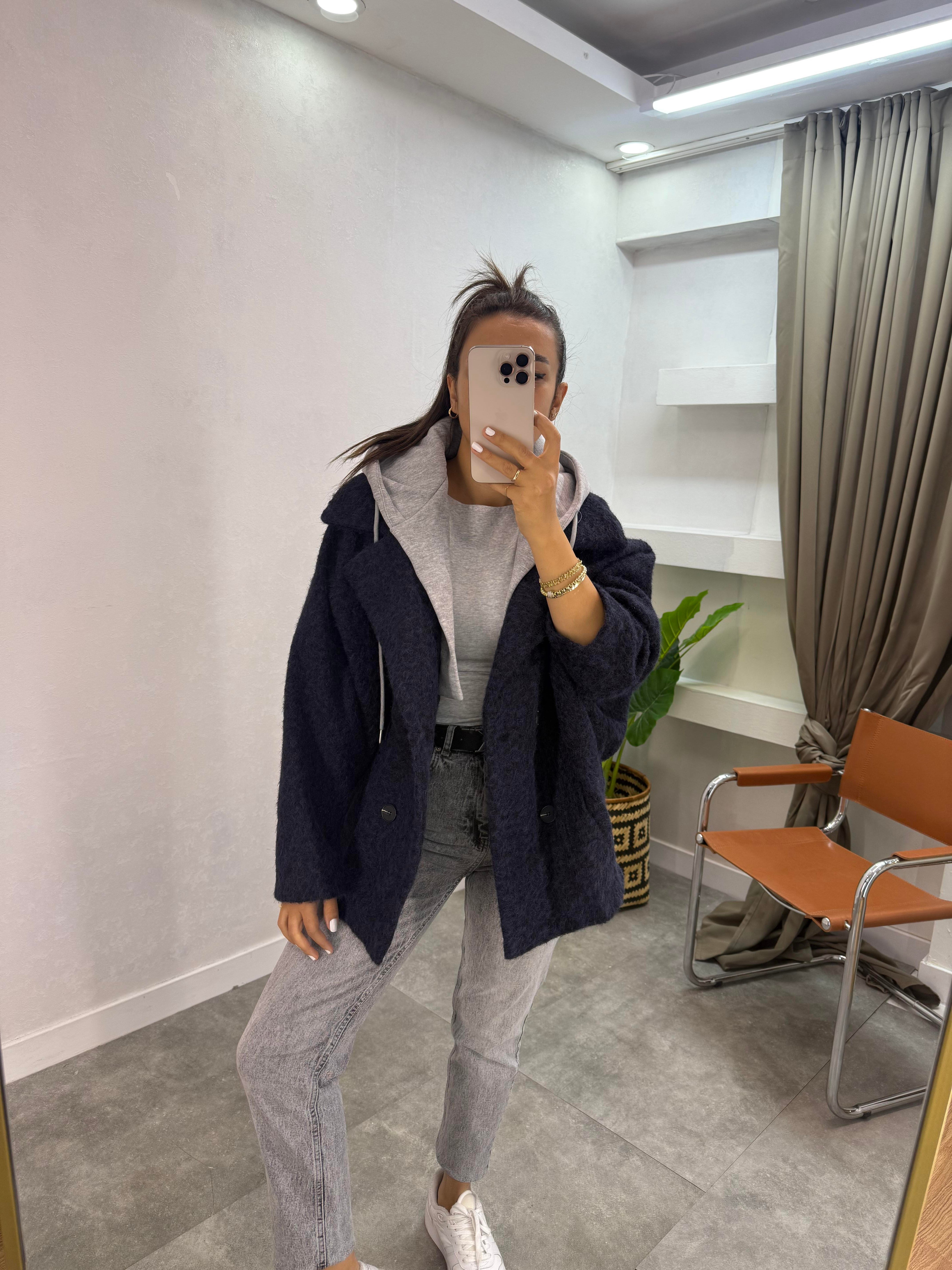 KAŞE KAPŞON DETAYLI YARASA KOL KABAN