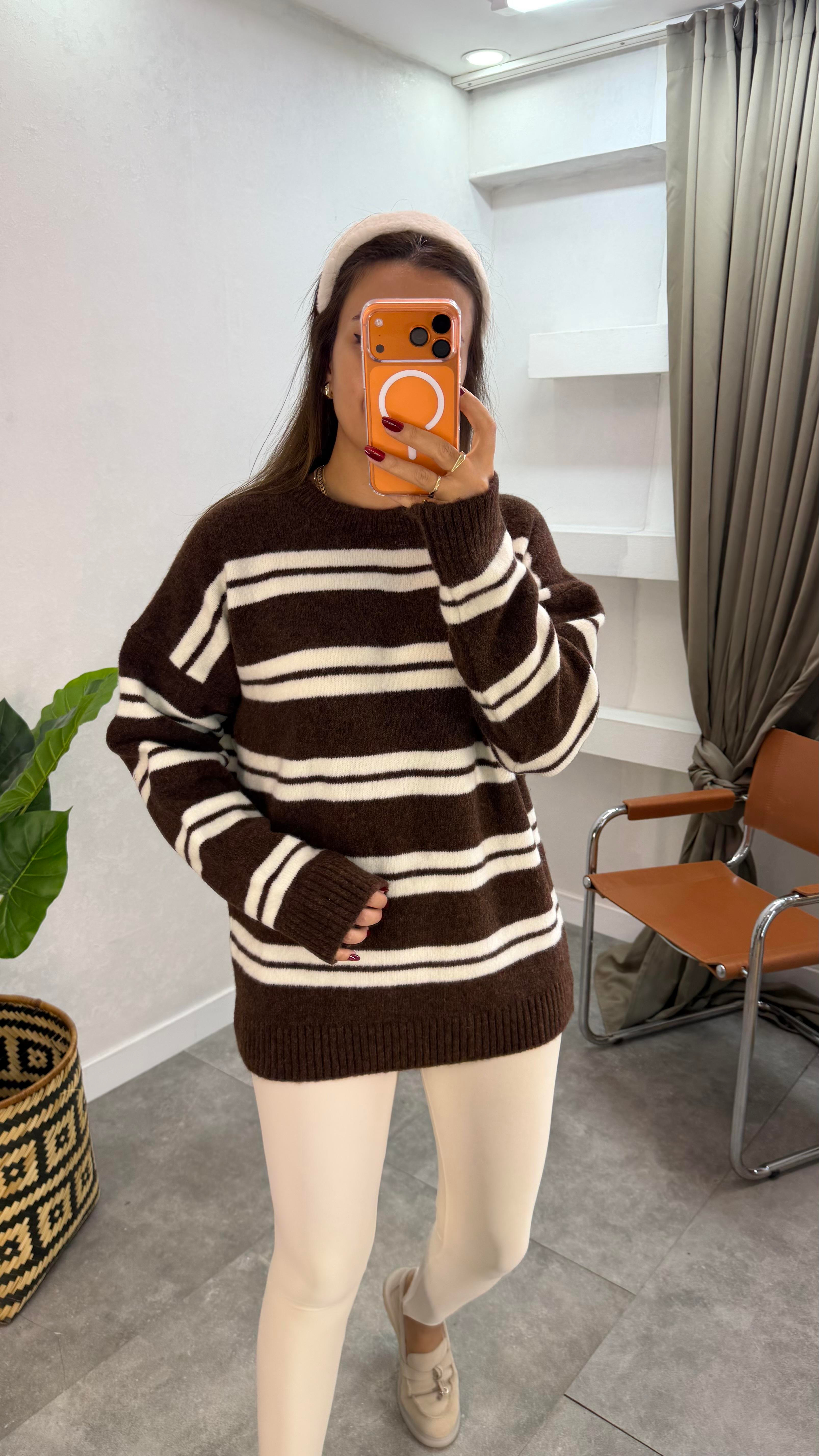 YUMOŞ ÇİZGİLİ KAZAK KAHVE